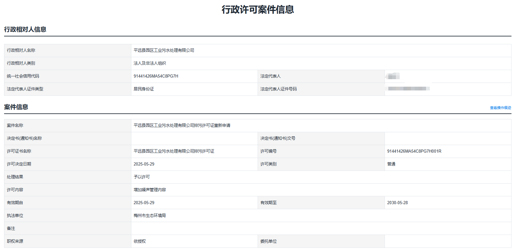 關(guān)于平遠(yuǎn)縣園區(qū)工業(yè)污水處理有限公司排污許可證重新申請的辦結(jié)公告