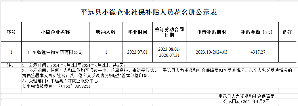 平遠(yuǎn)縣小微企業(yè)社保補(bǔ)貼人員花名冊(cè)公示表