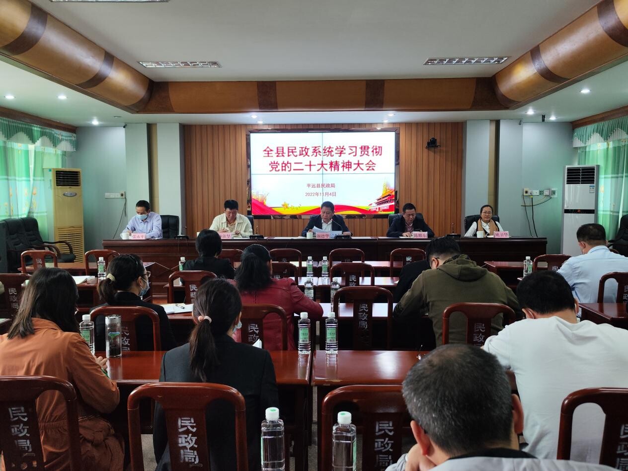 11月4日上午,全縣民政系統(tǒng)學(xué)習(xí)宣傳貫徹黨的二十大精神大會在民政局四樓會議室召開,會議深入學(xué)習(xí)貫徹黨的二十大精神,傳達(dá)學(xué)習(xí)全省、全市、全縣傳達(dá)貫徹黨的二十大精神大會精神,對做好全縣民政系統(tǒng)學(xué)習(xí)宣傳貫徹工作進(jìn)行動員部署。局黨組書記、局長顏德華主持會議并講話,民政局領(lǐng)導(dǎo)班子成員、機(jī)關(guān)全體干部職工、下屬各單位負(fù)責(zé)人和民政局黨支部全體黨員共40多人參加會議。 顏德華指出,黨的二十大是在全黨全國各族人民邁上全面建設(shè)社會主義現(xiàn)代化國家新征程、向第二個百年奮斗目標(biāo)進(jìn)軍的關(guān)鍵時刻召開的一次十分重要的大會,習(xí)近平總書記在會上所作的報告,為新時代新征程黨和國家事業(yè)發(fā)展、實現(xiàn)第二個百年奮斗目標(biāo)指明了前進(jìn)方向、確立了行動指南。全局上下要深刻認(rèn)識黨的二十大的重大政治意義、重大歷史意義、重大實踐意義,深刻領(lǐng)悟“兩個確立”的決定性意義,不斷增強“四個意識”、堅定“四個自信”、做到“兩個維護(hù)”。 顏德華強調(diào),全縣民政系統(tǒng)要迅速興起學(xué)習(xí)宣傳貫徹黨的二十大精神熱潮,把學(xué)習(xí)宣傳貫徹黨的二十大精神作為當(dāng)前和今后一個時期的首要政治任務(wù),認(rèn)真學(xué)習(xí)、深刻領(lǐng)會黨的二十大提出的新思想新論斷、作出的新部署新要求,開展多形式、分層次、全覆蓋的學(xué)習(xí)宣傳。 顏德華強調(diào),全縣民政系統(tǒng)要在全面落實上下功夫,對標(biāo)對表黨的二十大各項決策部署,進(jìn)一步明確民政工作的職責(zé)使命、目標(biāo)方向、思路任務(wù)、主要舉措,扎實辦好民生實事,持續(xù)增進(jìn)百姓福祉,切實把人民至上貫徹落實到民政工作的各方面全過程。一要進(jìn)一步提升社會救助水平;二要進(jìn)一步完善養(yǎng)老服務(wù)體系;三要進(jìn)一步提升基層社會治理能力;四要進(jìn)一步加強社會福利保障;五要進(jìn)一步提升公共服務(wù)水平;六要統(tǒng)籌做好疫情防控和安全生產(chǎn)工作。
