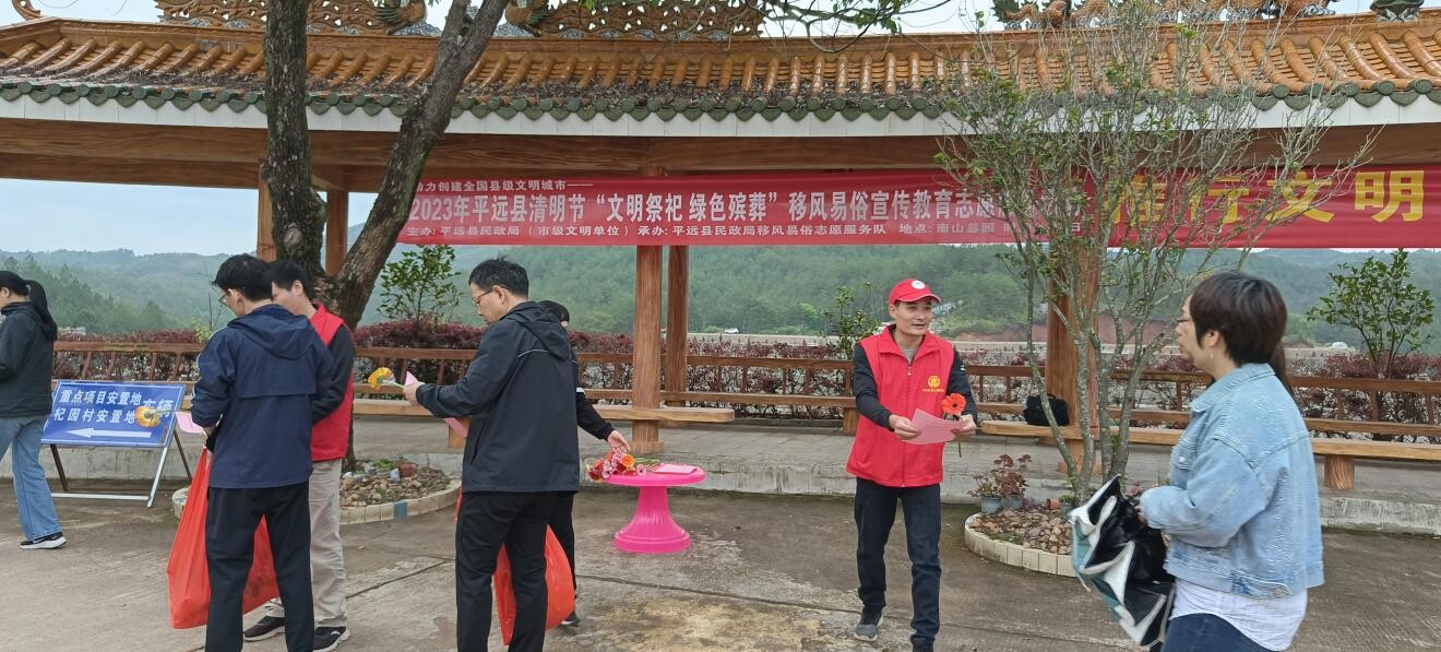清明將至,為秉承優(yōu)良傳統(tǒng)、倡導(dǎo)文明殯葬新風(fēng),進(jìn)一步提高我縣城市文明程度和市民文明素質(zhì),2023年4月4日上午,縣民政局移風(fēng)易俗志愿服務(wù)隊(duì)在大柘鎮(zhèn)南山墓園開展了以“文明祭祀