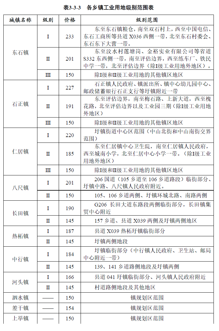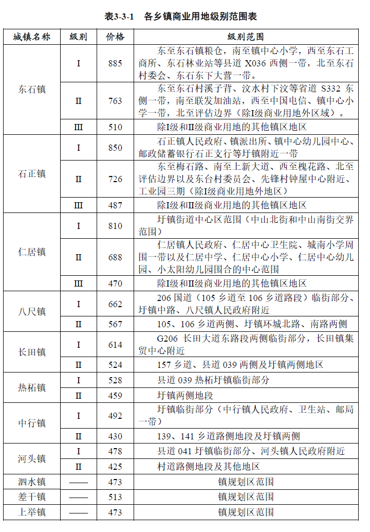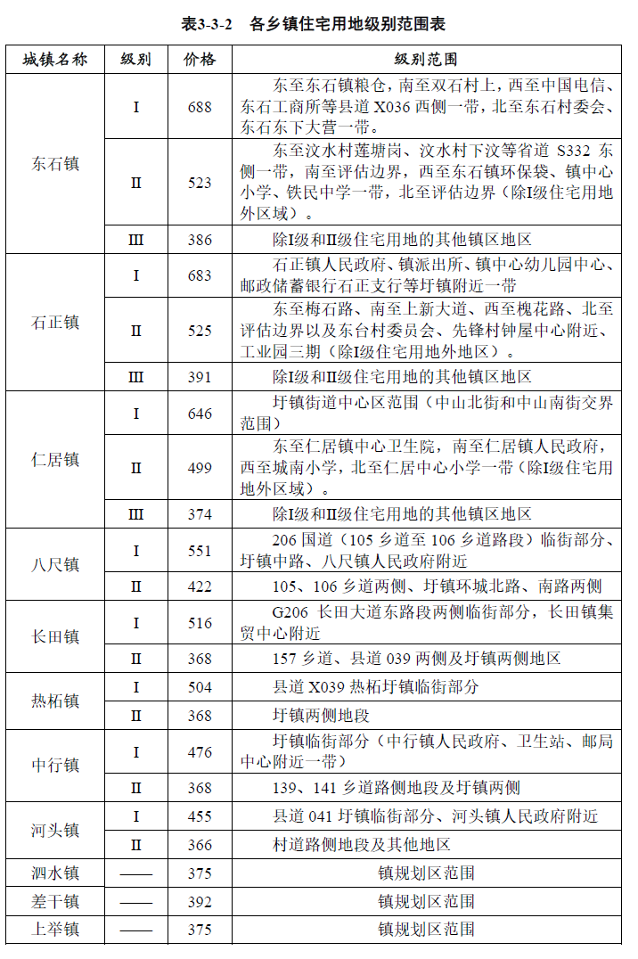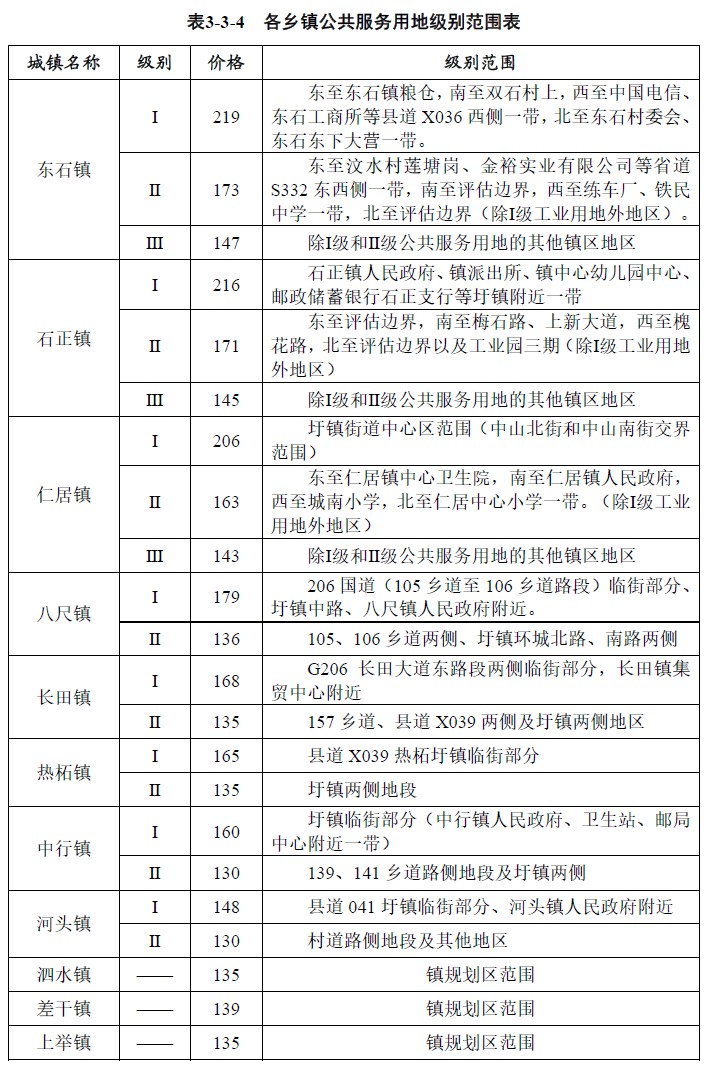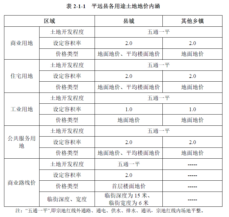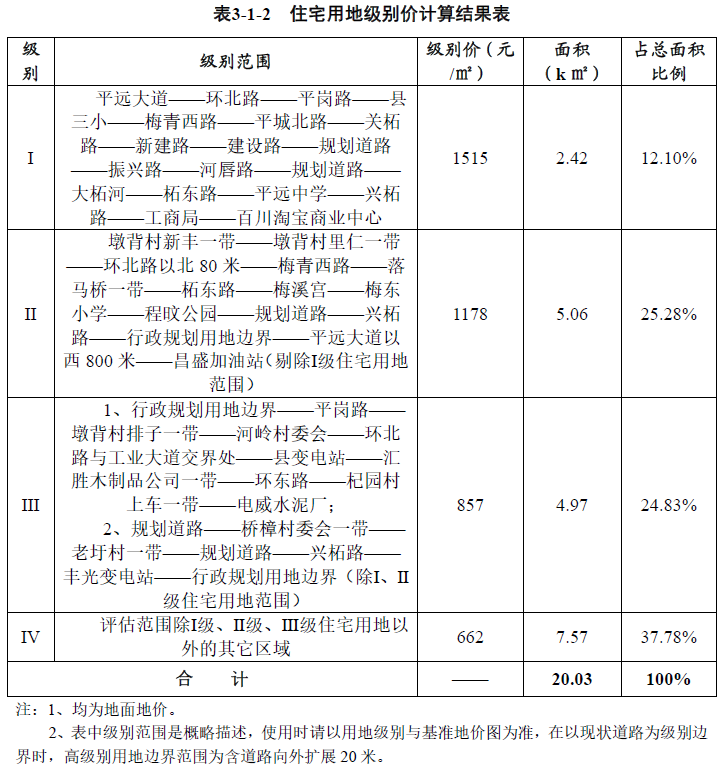 平府發(fā)〔2018〕9號 ? 關(guān)于公布實(shí)施平遠(yuǎn)縣城鎮(zhèn)土地定級與 基準(zhǔn)地價更新成果的通知 ? 各鎮(zhèn)人民政府,縣府直屬和省、市屬駐平各單位: 為保持我縣城鎮(zhèn)土地定級和基準(zhǔn)地價的現(xiàn)勢性,加強(qiáng)地價管理,合理配置土地資源,根據(jù)《中華人民共和國土地管理法》、《中華人民共和國城市房地產(chǎn)管理法》、《廣東省國土資源廳關(guān)于2016年城鎮(zhèn)基準(zhǔn)地價成果更新情況的通報(bào)》(粵國土資利用電〔2017〕129號)和《廣東省國土資源廳關(guān)于深入貫徹落實(shí)<關(guān)于擴(kuò)大國有土地有償使用范圍的意見>的通知》(粵國土資利用函〔2017〕1906號)等有關(guān)規(guī)定,依照《城鎮(zhèn)土地分等定級規(guī)程》(GB/T 18507-2014)和《城鎮(zhèn)土地估價規(guī)程》(GB/T 18508-2014)的技術(shù)要求,我縣已完成新一輪城鎮(zhèn)土地定級與基準(zhǔn)地價更新及公共服務(wù)項(xiàng)目用地基準(zhǔn)地價評估工作,成果已通過梅州市國土資源局組織的專家組評審驗(yàn)收,并經(jīng)縣政府常務(wù)會議研究同意,現(xiàn)予以公布,自印發(fā)之日起施行。原平國土資字〔2014〕4號文同時廢止。 ? ??? 附件:1.平遠(yuǎn)縣基準(zhǔn)地價評估范圍 ????????? 2.平遠(yuǎn)縣基準(zhǔn)地價內(nèi)涵 ????????? 3.平遠(yuǎn)縣基準(zhǔn)地價成果 ? ? 平遠(yuǎn)縣人民政府??? ???? 2018年7月5日??????? ? 附件1 基準(zhǔn)地價評估范圍 ? ? 附件2 基準(zhǔn)地價內(nèi)涵 附件3 基準(zhǔn)地價成果 一、各用途級別價格表 二、商業(yè)路線價格表 三、各鄉(xiāng)鎮(zhèn)基準(zhǔn)地價價格表